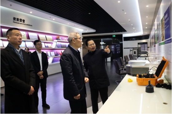 领导一行参观了天瑞仪器多功能展厅。刘召贵博士首先向苏州市政协、工商联长期以来的悉心指导和大力支持表达了感谢。并且为来宾详细的介绍了天瑞仪器的产品与技术,周俊对天瑞在技术拓展、核心部件研发、市场化发展取得的成就表示了充分的肯定。同时,他也希望天瑞仪器能够稳中求进,以进促稳,抢抓机遇,做到可持续发展,为地方经济社会发展作出更大贡献。