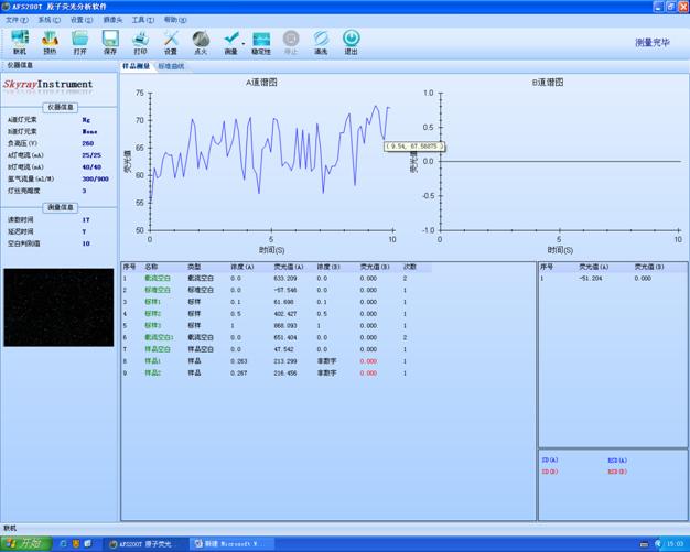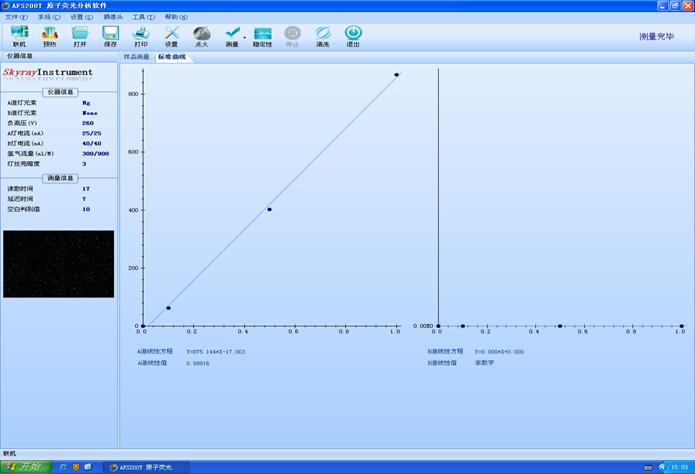 2.1.2载流液的专门配制 载液运通常选取与标液基体相共同的等氨水浓度酸稀硫酸,使用促进改革打样定制至表现软件参与性表现并清洁整体的设备蒸汽管道。 5%HCL(体积计算高考分数) :更准确量取 50ml 浓酸洗,用去阴离子水定容至 1000ml。 2.1.3还原系统剂的调配 0.5%氢阳极氧化钾(钠) (K(Na)OH)与 2%硼氢化钾(钠) (K(Na)BH4)相溶硫酸铜溶液。 自制步骤一下:先最精确称取 5g 氢脱色钾(钠)混溶去阳阴离子池中,请判定氢脱色钾(钠)完完全全熔化分解后,再最精确称取 20g 硼氢化钾(钠)放到该氢氧化钠溶液中,用去阳阴离子水定容到 1000ml,熔化分解后摇匀。推荐 用时现配,比较好不必住宿存有,自制工作流程不要倒置。 2.1.4砷As)的土样治疗 从供试品中称样0.20g影响于玻离烧杯杯,加如8ml HCl,5mlHF, 8ml HNO3。加熱消解。降温后定容于100ml余量瓶中,加如5mlHCl,5%的硫尿和抗坏血酸饱和溶液20ml。(也做供试品空白页)。 2.1.5设备实操因素: 负低压(V):270;灯直流电压(mA):40/40;氩气的流量(ml/M):300/800 灯丝亮暗度:3 ;读数日期:12s;延迟时间段日期:2s;空缺判别值:2 3、运用示范 3.1.涂料上中测汞 前除理:从样本中称重1.4034g于波璃烧杯里,申请加盟8ml HNO3和2mlHClO4调温可溶性高,溶于水的(消解的温度350℃以上)。蒸发后定容于50ml体积瓶中,申请加盟1ml HNO3,5%的重铬酸钾1ml。(与此同时做样本空白图片)(恢复备份剂加0.5%铁氰化钾) 准则稀硫酸配值有机废气浓度:0.1ppb 0.5ppb 1ppb作等值线。 (A道波形网络方程式:Y=875.144*X-17.003);(A道波形网络值:0.99916)见图1 设备控制先决条件: