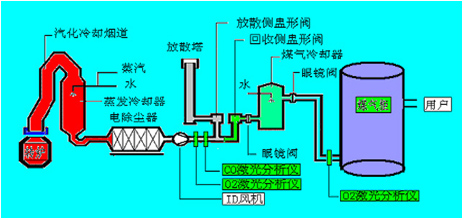 如图2可见,在回收(shou)侧(ce)盅(zhong)形(xing)阀(fa)/分(fen)(fen)散侧(ce)盅(zhong)形(xing)阀(fa)前布设(she)烟气(qi)(qi)(qi)在线分(fen)(fen)析仪,只有当通过C✃O在线监测(ce)系(xi)统测(ce)得转炉煤(mei)气(qi)(qi)(qi)中的(de)CO浓(nong)度在30%以(yi)上(shang)时,才(cai)打开气(qi)(qi)(qi)体切换站(zhan)的(de)回收(shou)侧(ce)盅(zhong)形(xing)阀(fa)进入(ru)煤(mei)气(qi)(qi)(qi)柜(ju)储存(cun),否(fou)则(ze)通过分(fen)(fen)散侧(ce)盅(zhong)形(xing)阀(fa)通过放散塔点火燃烧。在煤(mei)气(qi)(qi)(qi)柜(ju)前布设(she)烟气(qi)(qi)(qi)在线分(fen)(fen)析仪,只有在线监测(ce)系(xi)统测(ce)分(fen)(fen)析保证煤(mei)气(qi)(qi)(qi)柜(ju)内O2含量不会超标(控制在1%以(yi)下(xia))才(cai)允(yun)许焦(jiao)煤(mei)煤(mei)气(qi)(qi)(qi)进入(ru)煤(mei)气(qi)(qi)(qi)柜(ju),否(fou)则(ze)启动停止回收(shou),以(yi)保证系(xi)统的(de)稳定性(xing)和安(an)全(quan)性(xing)。