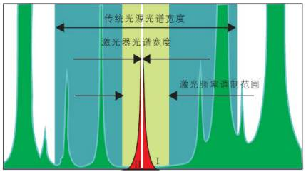 频繁(橙红色:被测空气 绿色环保:其它的空气) 图 4 “单线光谱图”在测量道理图      TDLAS算作一种生活深入进行分析气味的新技巧,会因为半导体设备脉冲机光光谱仪仪大小远大于气味消化谱线的大小,往往TDLAS就是种生活高分数辨率的光谱仪仪消化技巧。与红外的气味深入进行测试仪想必,脉冲机光未受H2O、CO2及焊接烟尘的影晌,自动测量更精确性,识别率高,使用期更长。