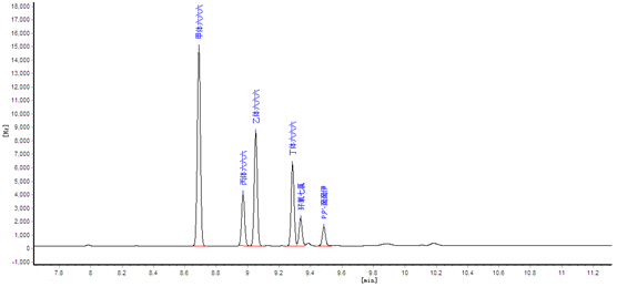 GC-5400测试(shi)蔬(shu)菜中六种有机氯农(nong)药残(can)留,各物质(zhi)分(fen)离效果(guo)良好,灵敏度高,样品测试(shi)结(jie)果(guo)准确可(ke)靠,可(ke)广泛应用于农(nong)药𝄹残(can)留的检(jian)测分(fen)析。
