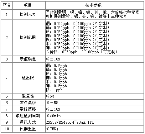(2)能够同时测量铜、镉、铅、锌、汞、砷、六价铬七种元素,还可扩展测量镍、锰、铁、钴、铊等十余种重金属;