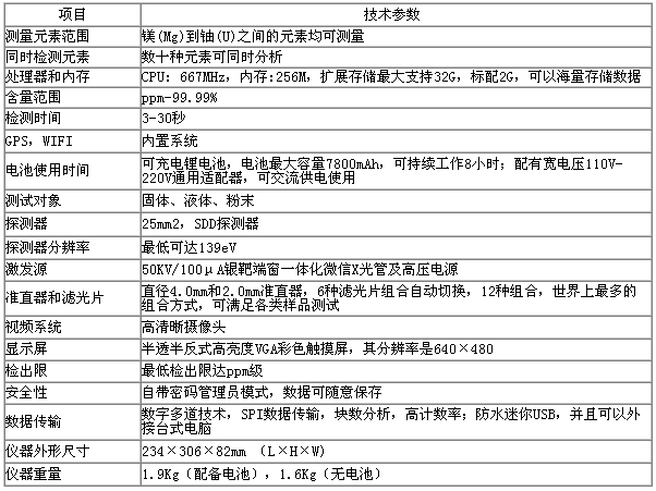 下面举出了大方高价属在线播放分析一下仪的有一些重要的技术性因素(表1)。 表1 天瑞检测仪器 EHM-X200美观高价属探测仪技术性数据