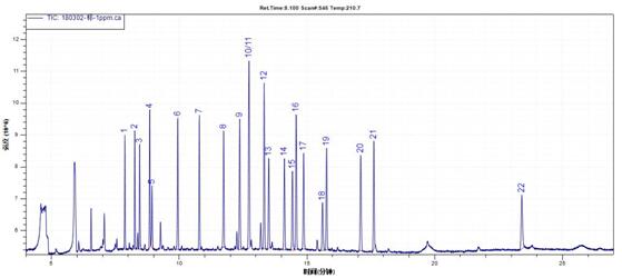 💃 测定方式:TIC(FULL SCAN)定性(扫描范围:45-450amu),SIM模式定量。