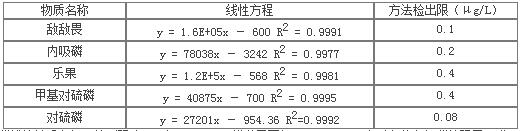 用无机采血管浸出底层的水中将留的无机磷化肥,用GCMS完成测量,以补齐时光和规定质谱图匹配完成定性处理,以各材料酶联免疫法化合物峰适用面积及外标法完成酶联免疫法。在国家标准GB3838-2002中,对四种无机磷的避免过量分别是为:对硫磷3ug/L,甲基对硫磷2ug/L,马拉硫磷50 ug/L,乐果80 ug/L ,内吸磷30 ug/L,敌敌畏50 ug/L。